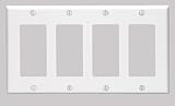 Leviton 80412-W 4-Gang Decora/GFCI Device Decora Wallplate, Standard Size, Thermoset, Device Mount, White
