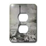 Scenes from the Past Vintage Stereoview - Eiffel Tower Paris France 1889 Black and White - Light Switch Covers - 2 plug outlet cover