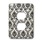 TNMGraphics Vintage Designs - Black and White Damask - Light Switch Covers - 2 plug outlet cover