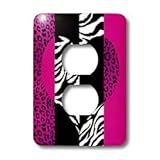 Janna Salak Designs Prints and Patterns - Pink Black and White Animal Print - Leopard and Zebra Heart - Light Switch Covers - 2 plug outlet cover