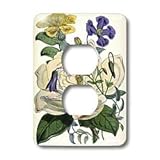 Florene Victorian Images - Victorian White Purple and Yellow Floral - Light Switch Covers - 2 plug outlet cover