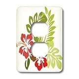 Florene Décor II - Hawaiian Hibiscus n Leaves Print - Light Switch Covers - 2 plug outlet cover