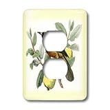 Florene Vintage - Pretty Vintage Red Black Yellow Bird On Branch - Light Switch Covers - 2 plug outlet cover